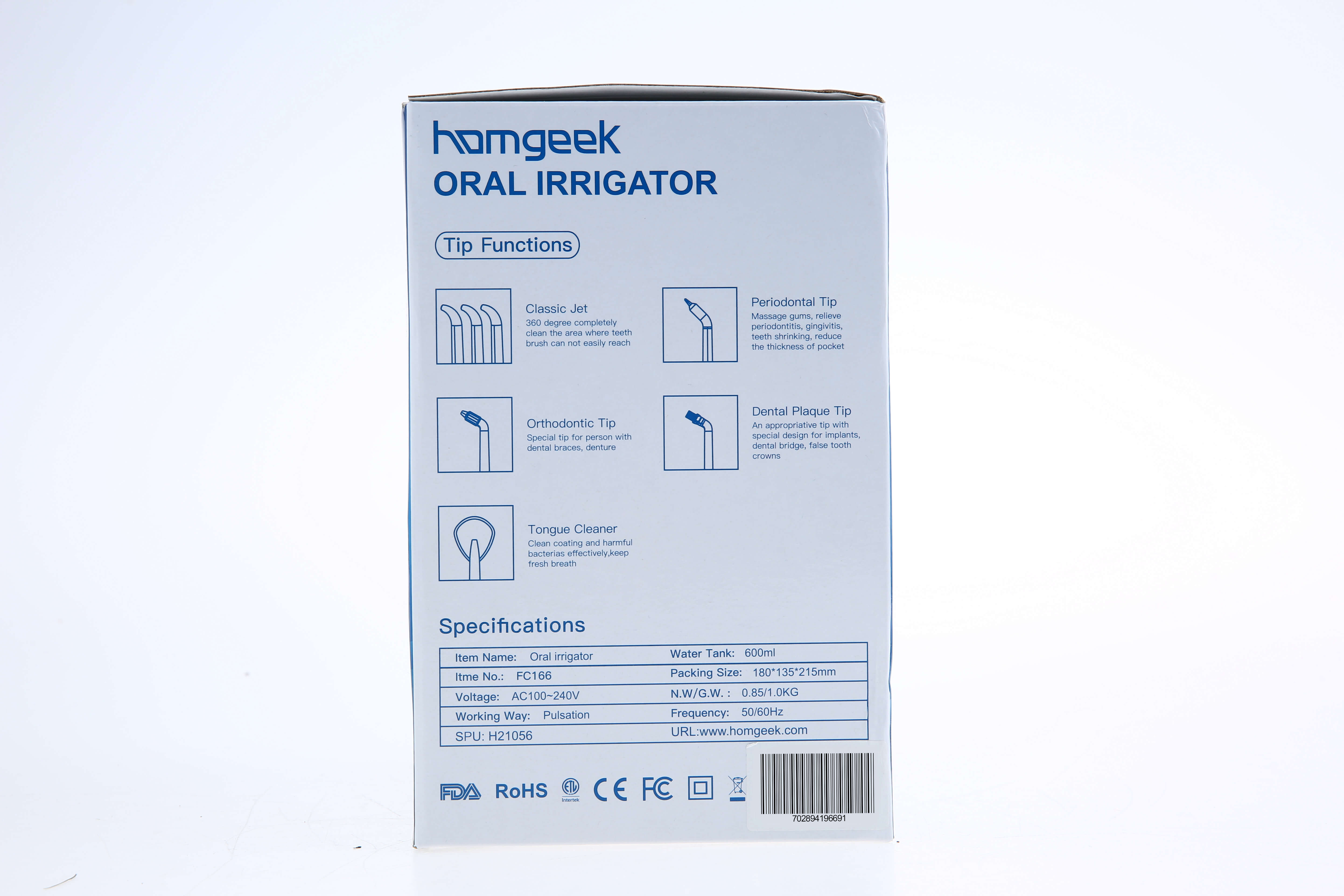 4. [7 Multifunctional Tips for Family Use] : homgeek Water Flosser Comes with 7 multifunctional with 5 functions include 3 jet tips clean where tooth brush can not easily touch; 1 tongue cleaners support clean coating and bacteria on the tongue; 1 orthodontic tip removes food debris in the brace; 1 dental plaque tip removes dental plaque and food debris at hard to reach area; 1 periodontal tip rinse and massage deep below the gumline. Best choice for whole family to floss.